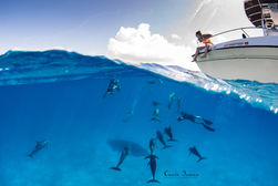 Our adventurous and highly experienced crew has either grown up in Bimini or lived there for many years, bringing extensive hands-on expertise and an intimate understanding of the local area and wildlife behavior. Cassie has known this team closely for over a decade, and has collaborated with them in the water with dolphins specifically for the past six years. While they may be famously shark-obsessed, all of Neal Watson's crew have a well-kept soft spot for our dolphriends.